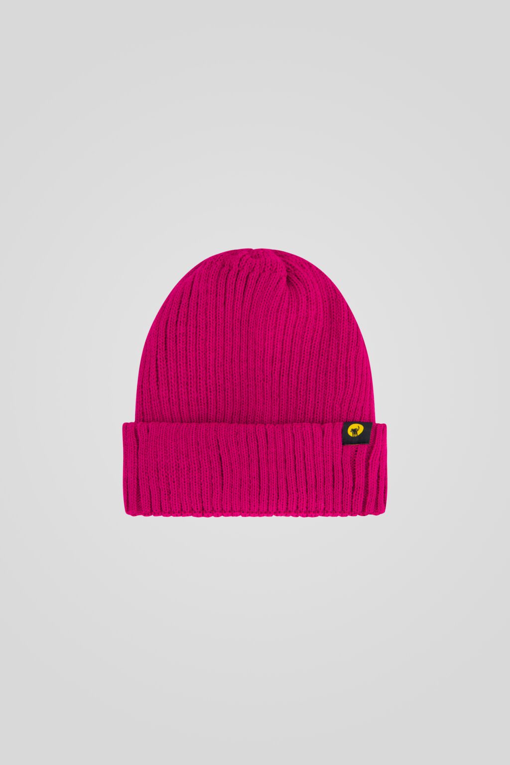 Cappello in maglia a costine fucsia unisex, un accessorio essenziale e senza tempo, pensato per offrire calore e comfort durante i mesi più freddi.