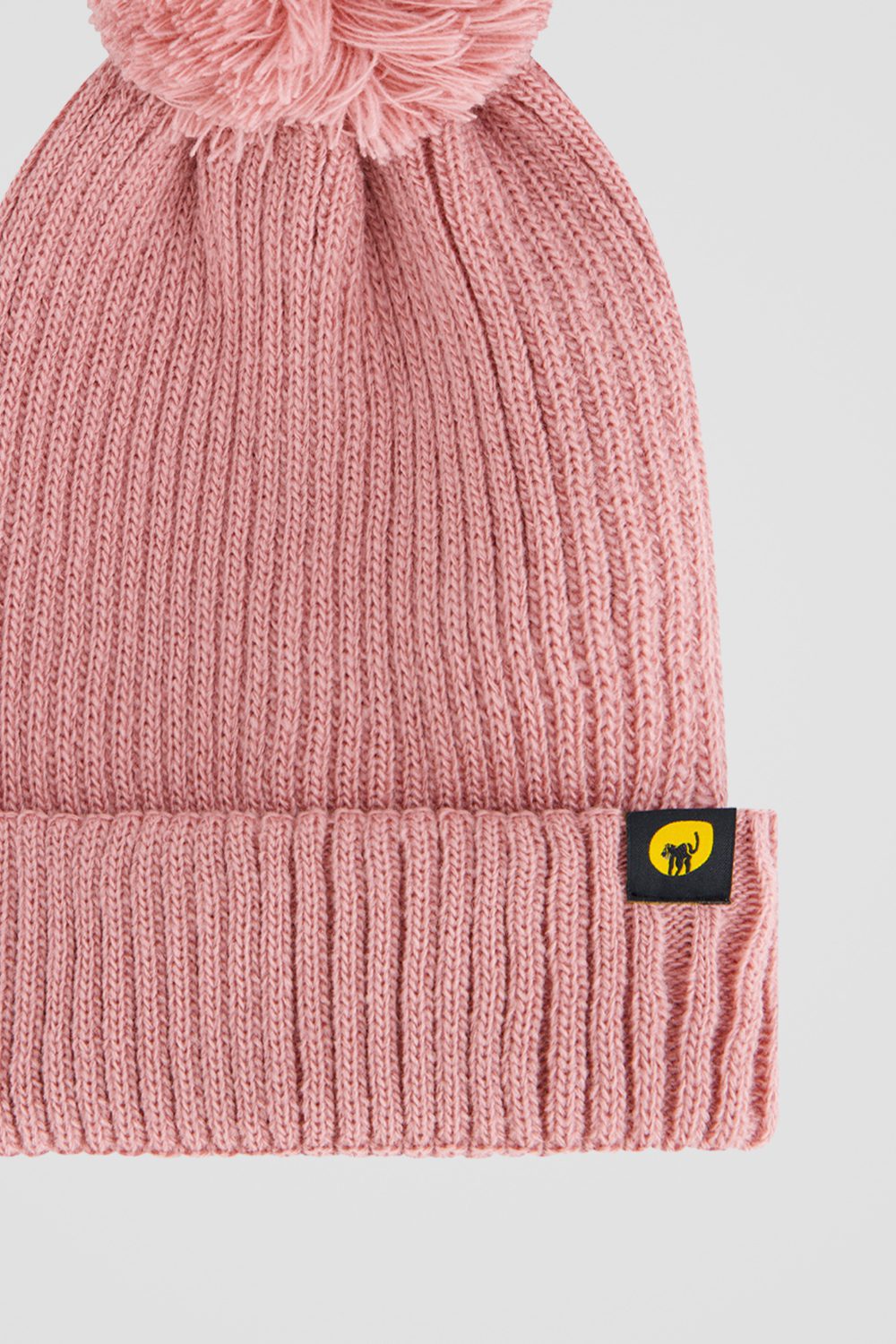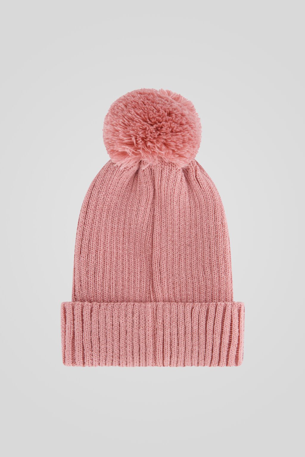 Cappello in maglia rosa con pom pon da bambina, caldo e confortevole, pensato per completare con stile ogni look invernale.