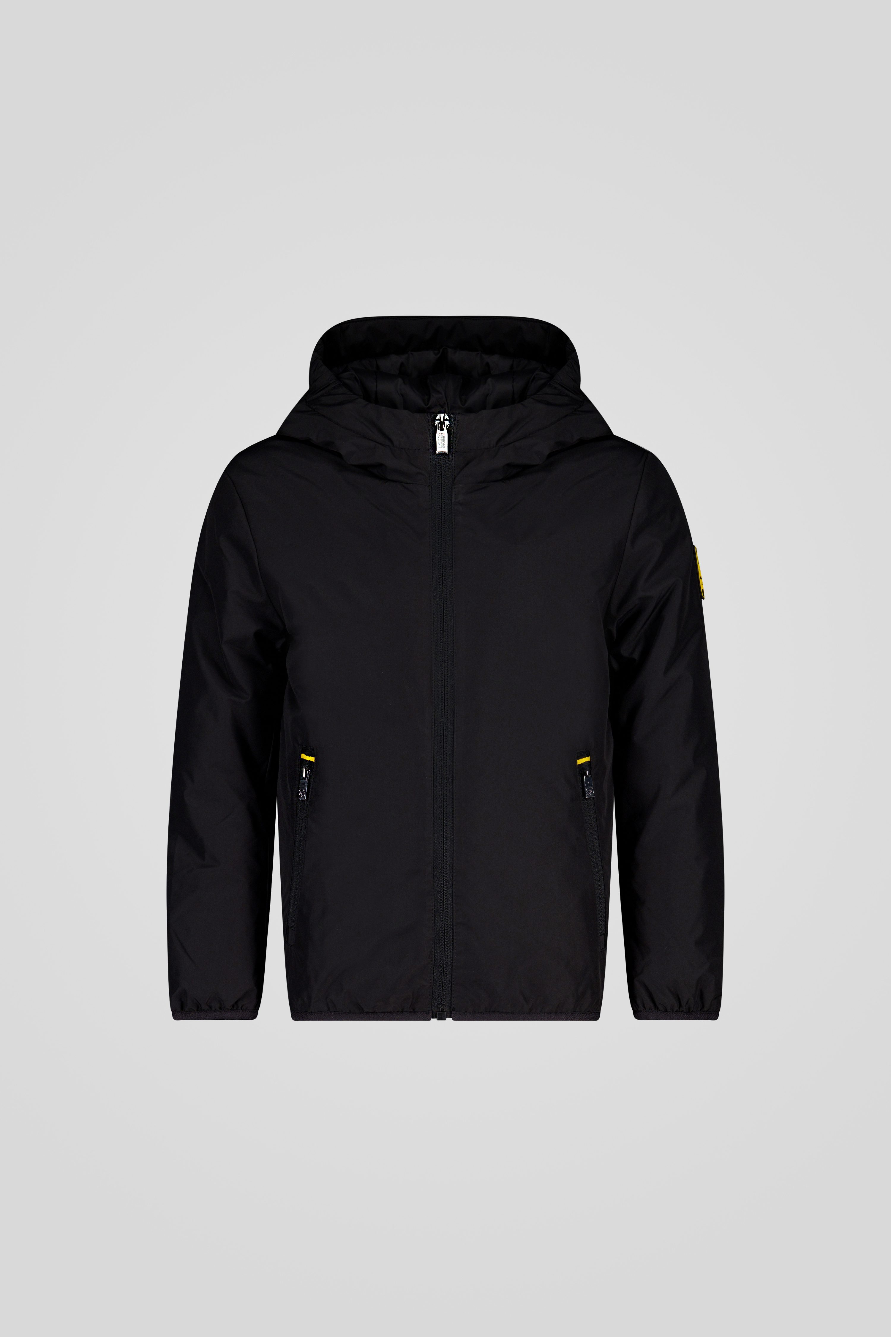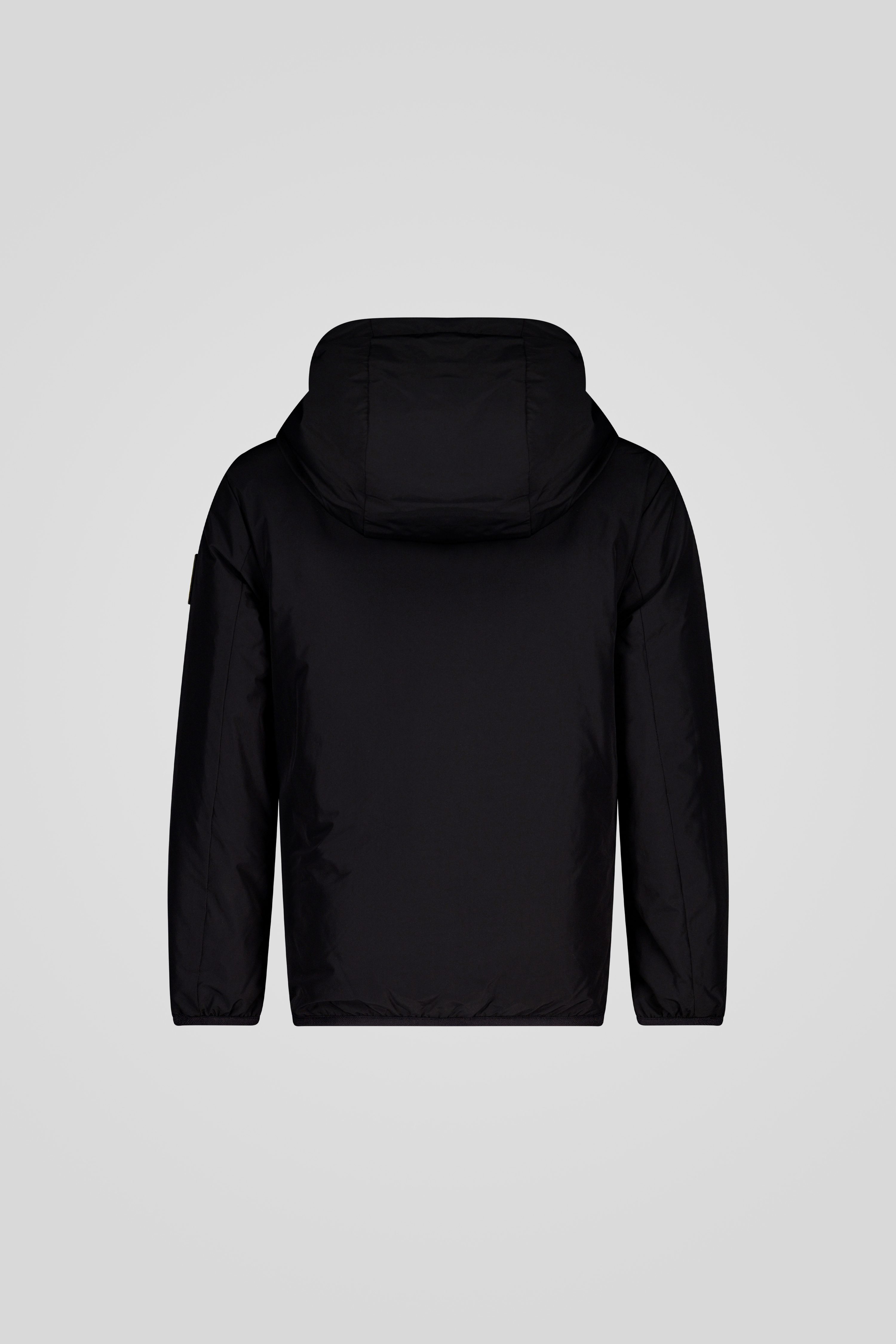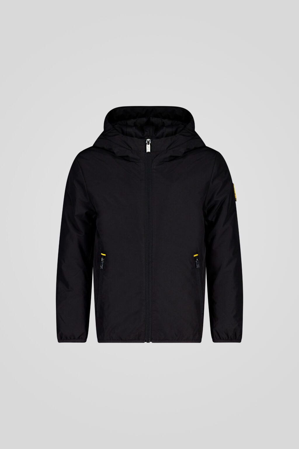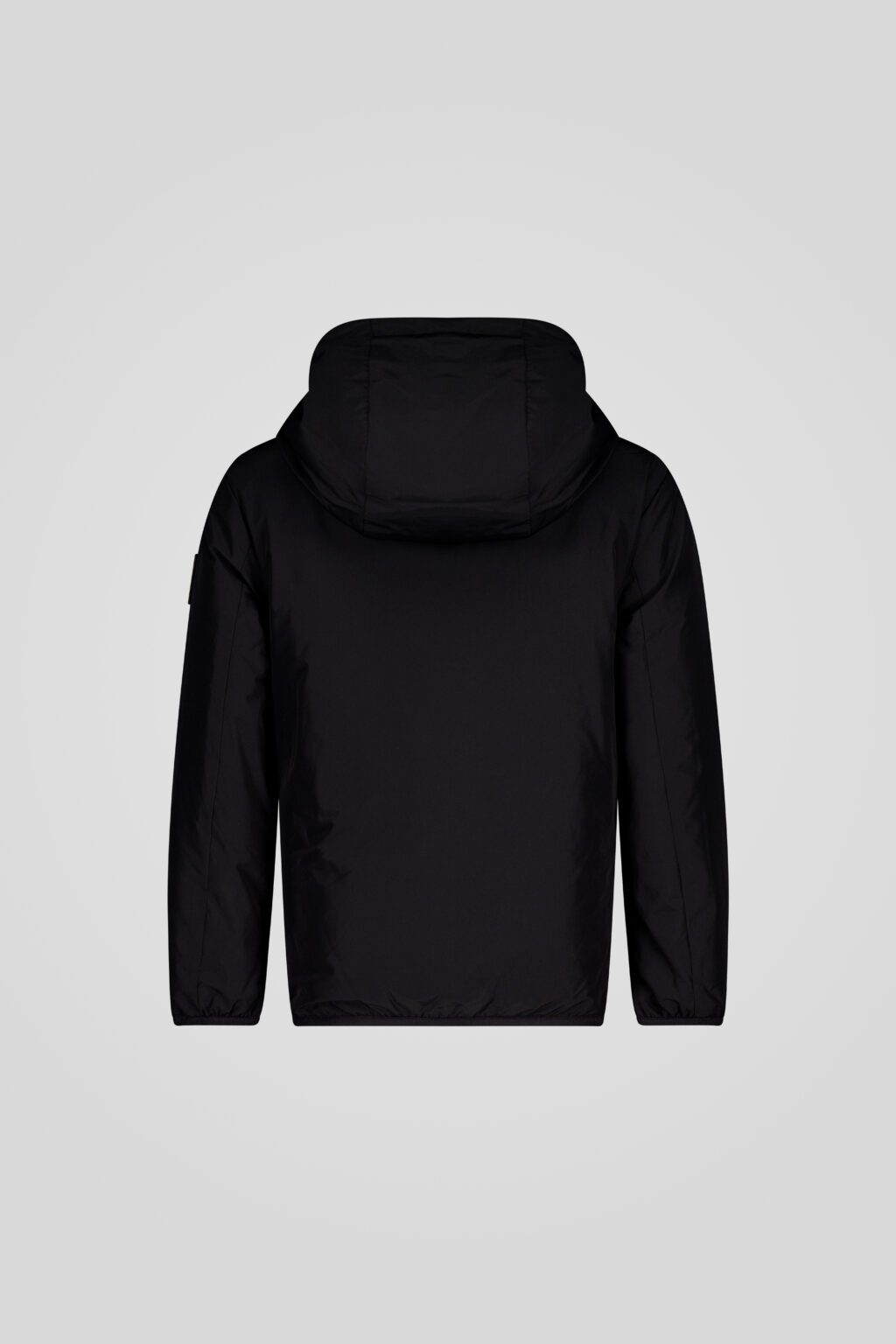 Giacca con cappuccio nera unisex, dal design essenziale e funzionale, pensato per offrire protezione e comfort durante i mesi più freddi.