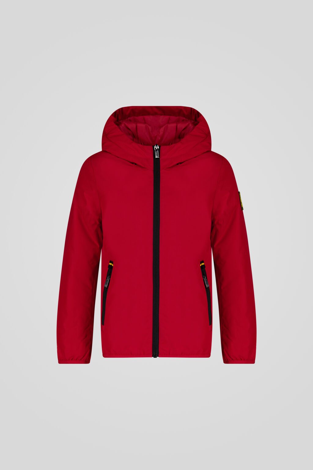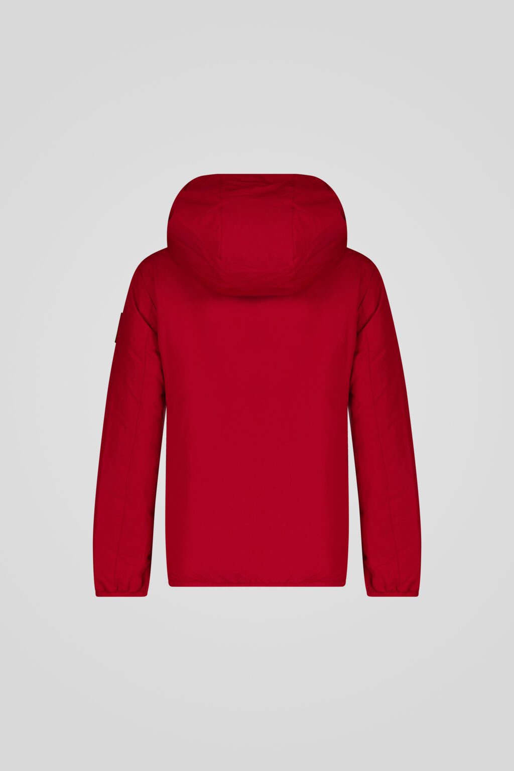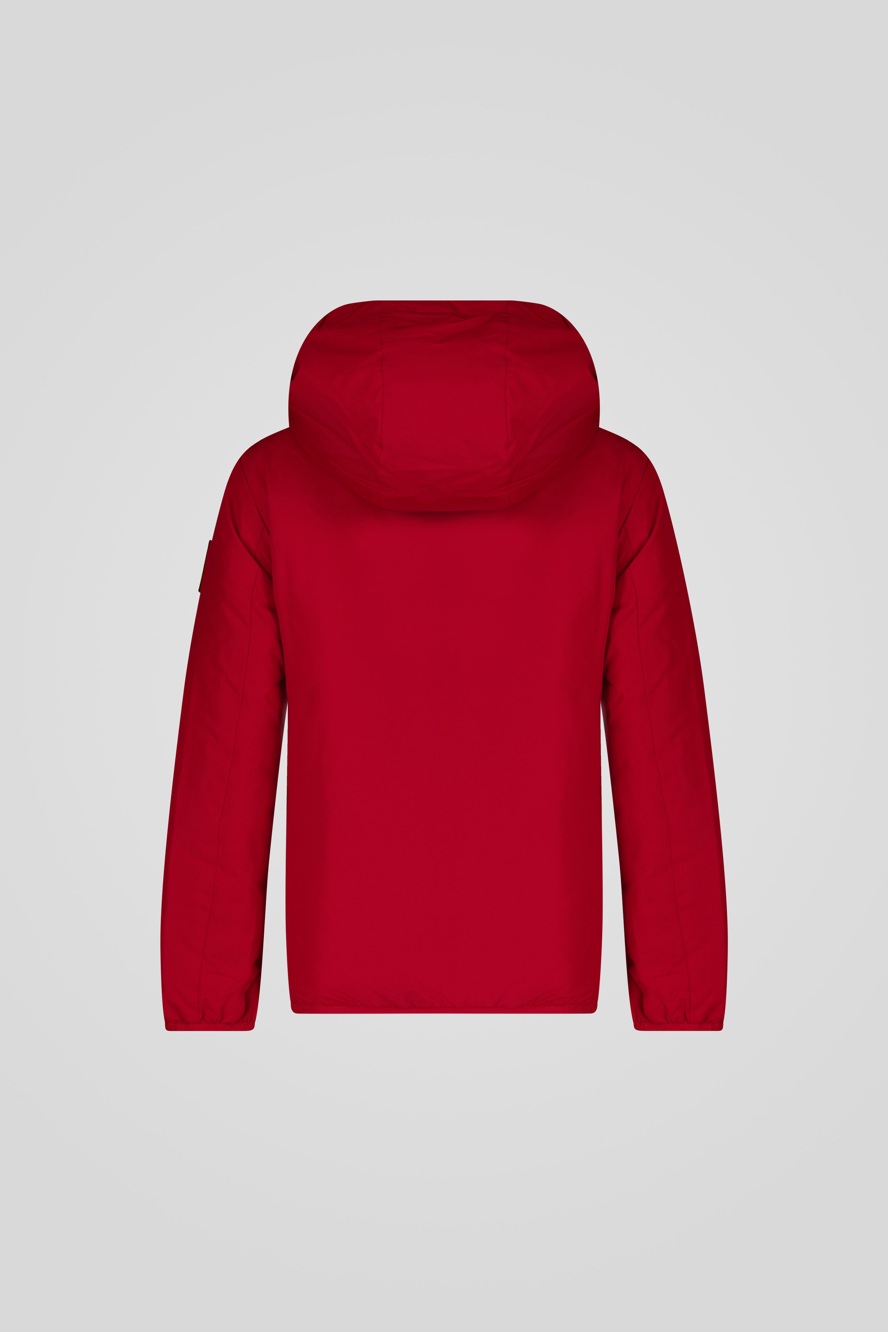 Giacca con cappuccio rossa unisex, dal design essenziale e funzionale, pensato per offrire protezione e comfort durante i mesi più freddi.