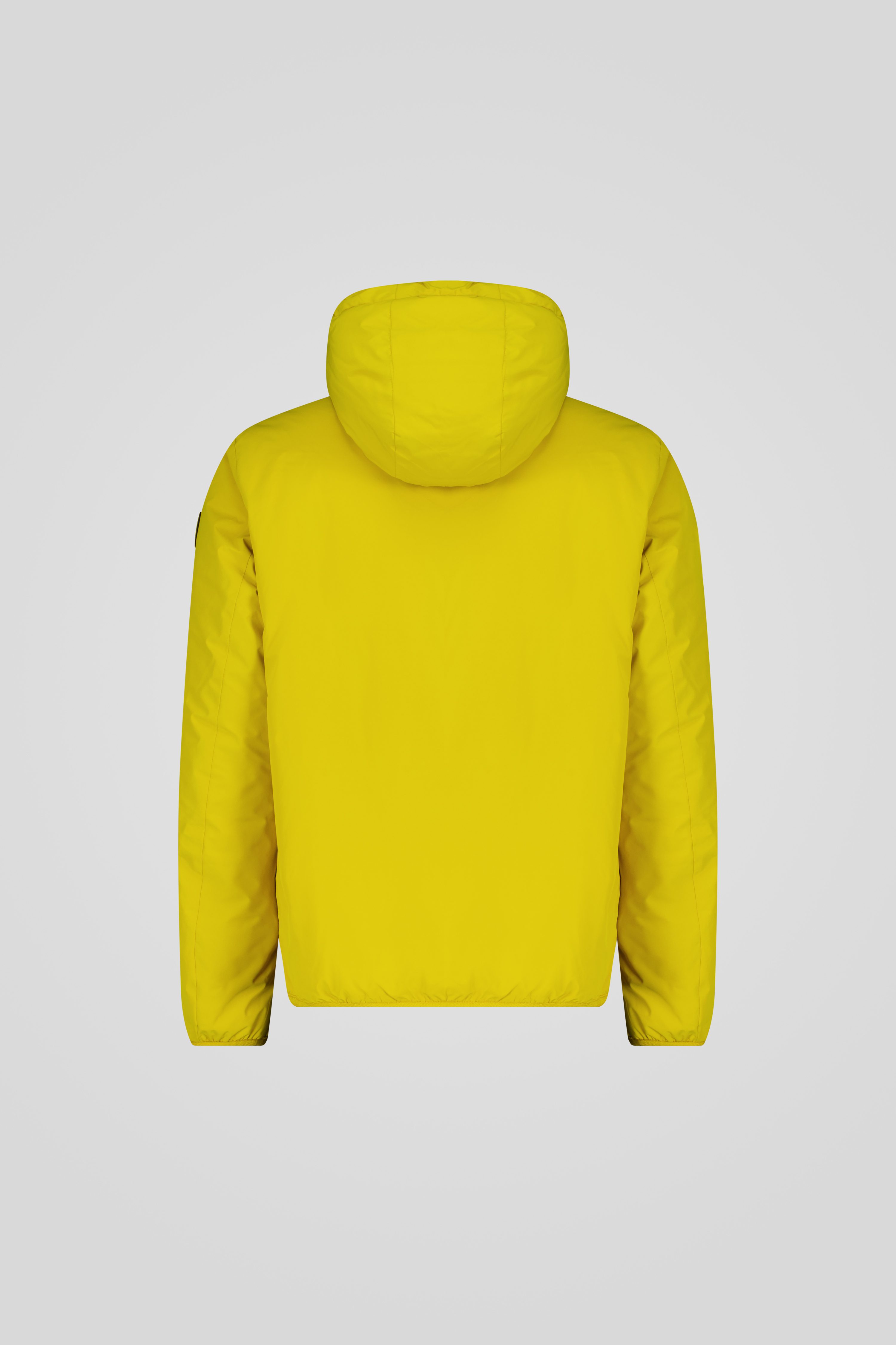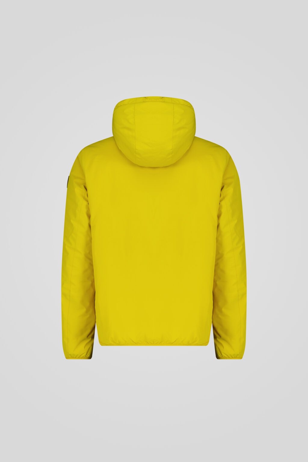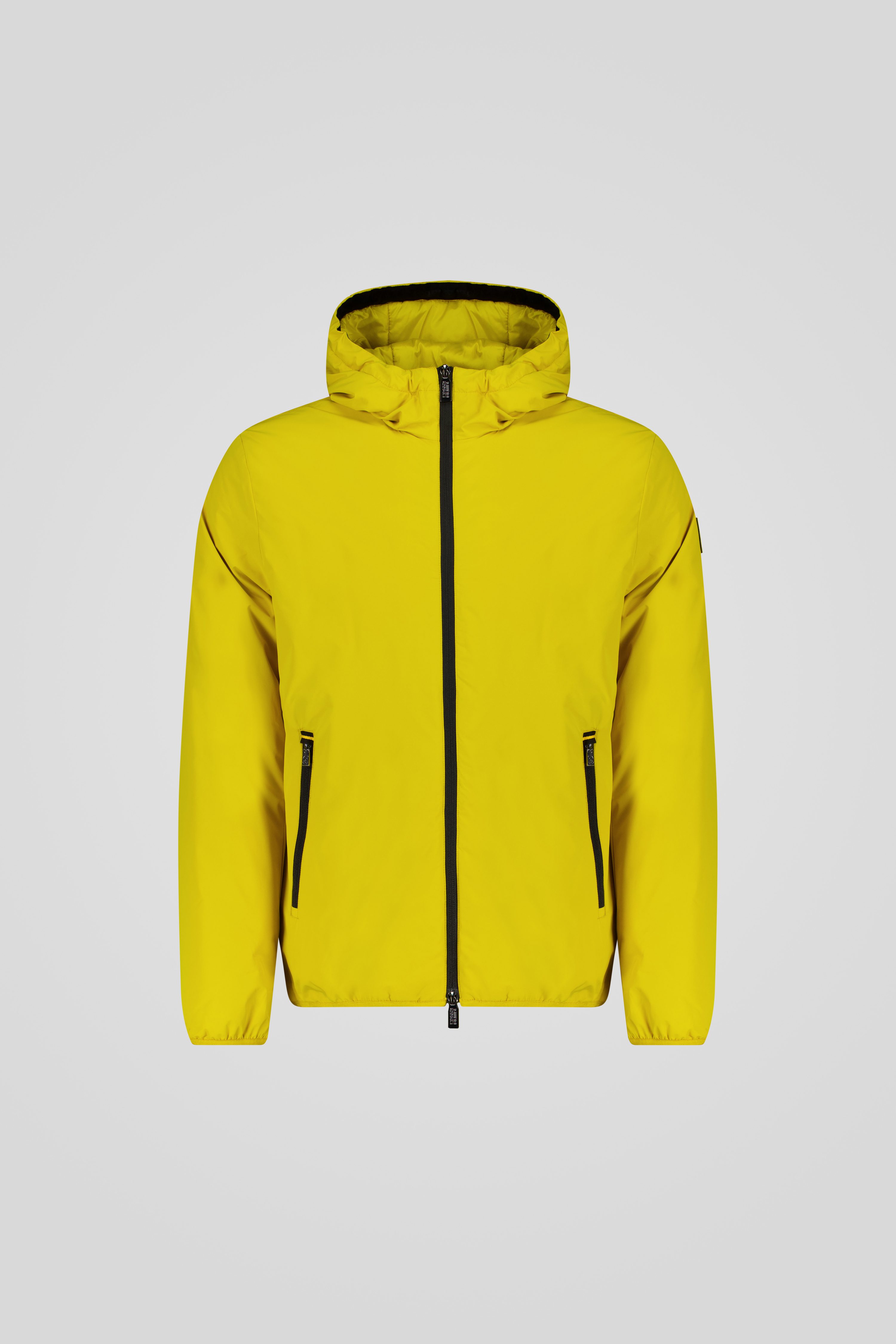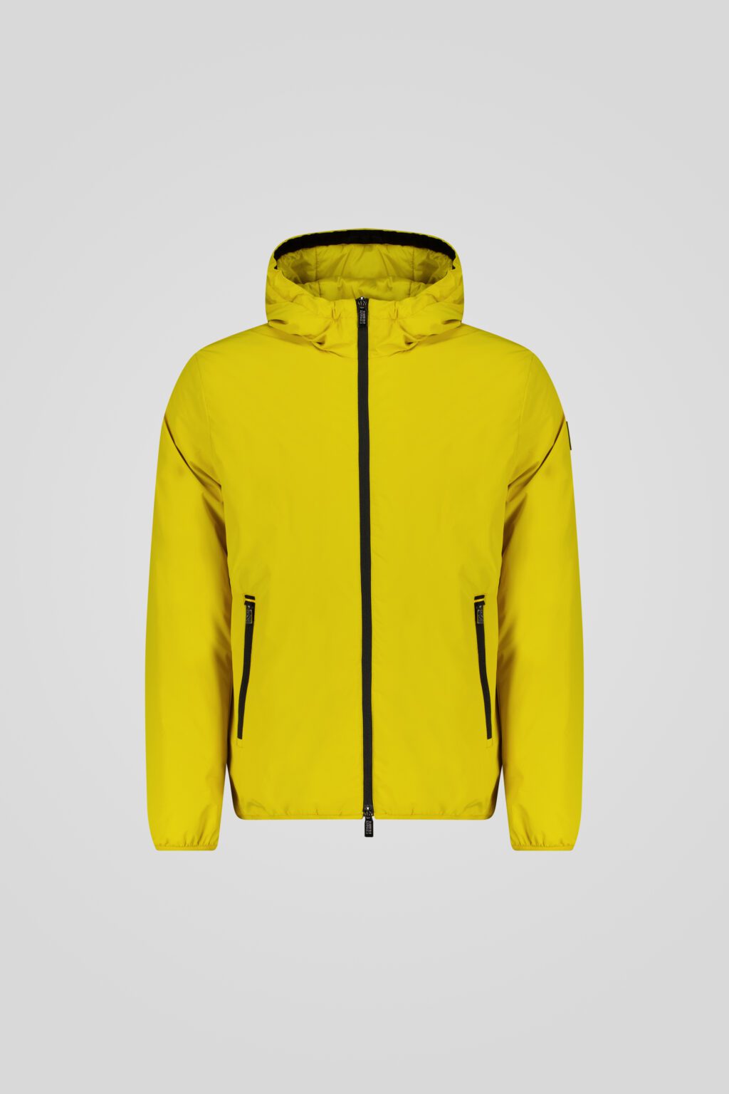 Giacca gialla con cappuccio dal design semplice e pulito.