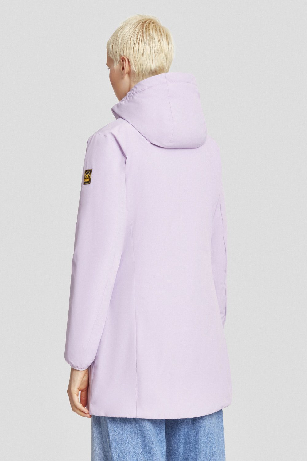 Giacca imbottita lunga lilla con cappuccio, realizzata in tessuto poly taslan: resistente, leggero e trattato DWR per una protezione efficace dagli agenti esterni. L’imbottitura in ovatta da 80 grammi assicura calore e comfort.