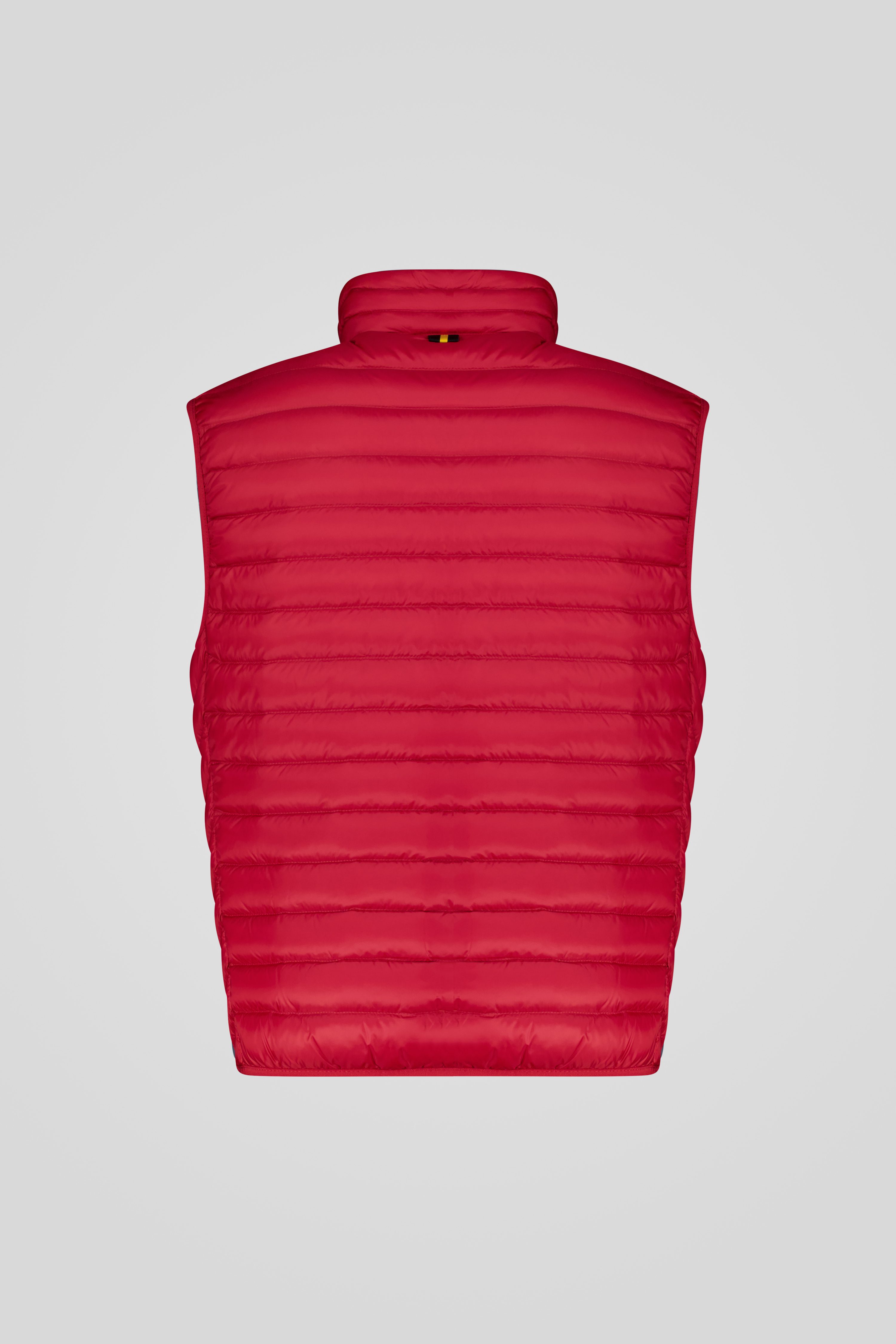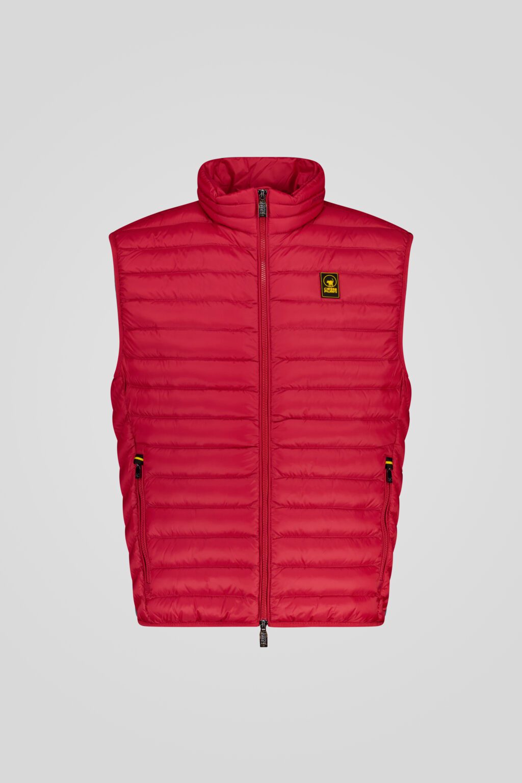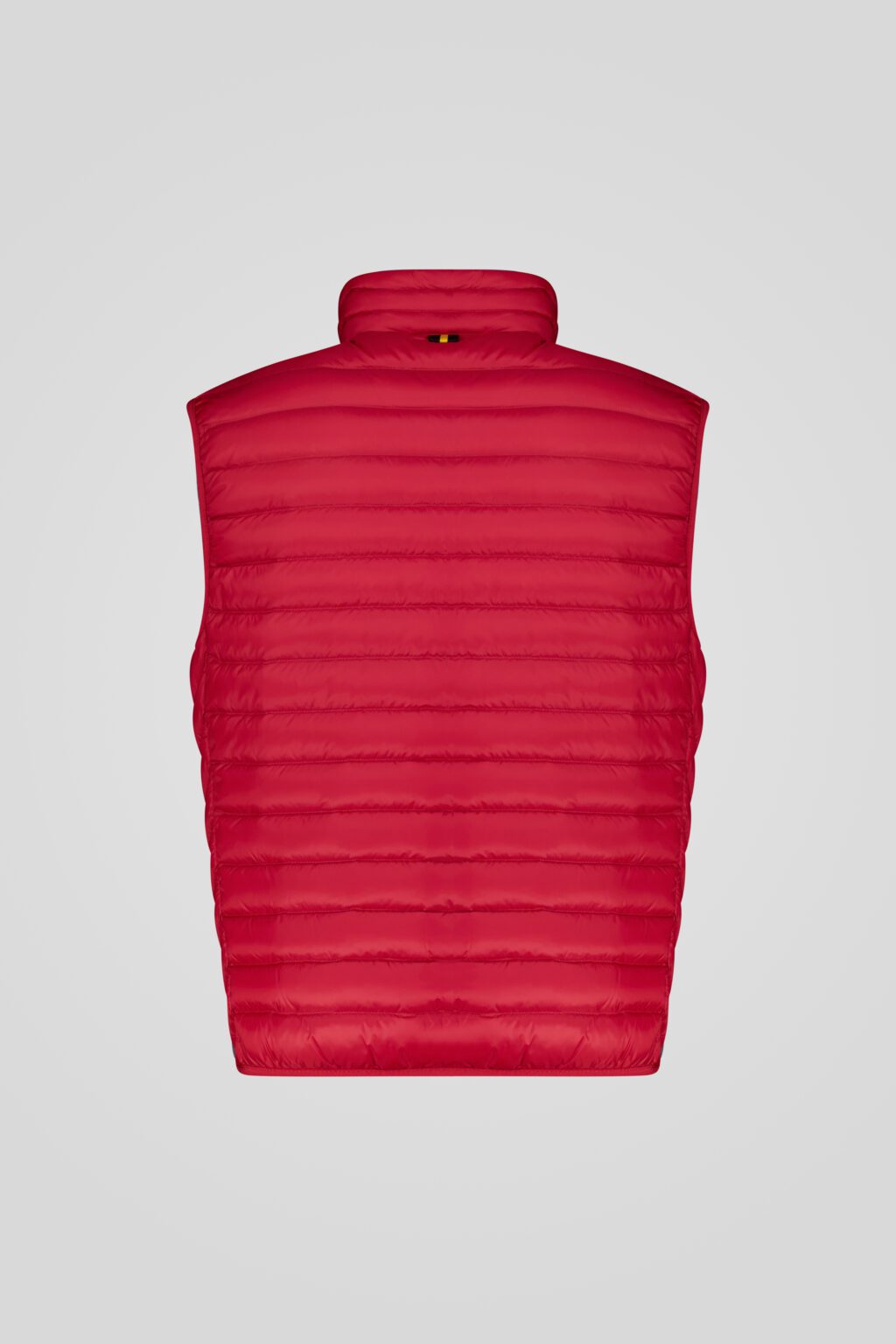 Gilet rosso 100 grammi con due tasche e trapunta a spina di pesce sui fianchi per una vestibilità più ergonomica.