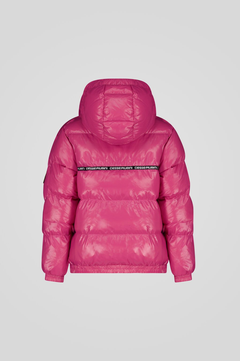 Piumino trapuntato fucsia con cappuccio, pratico e distintivo, pensato per garantire calore e comfort anche nelle giornate più fredde, senza rinunciare allo stile.