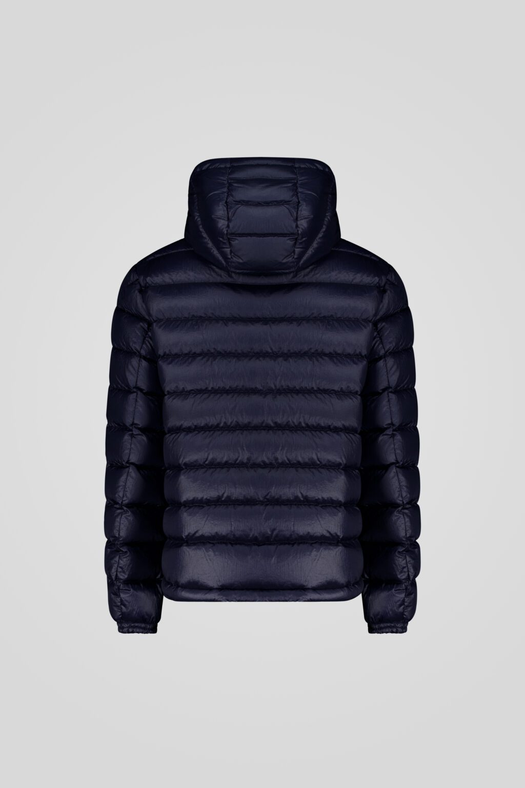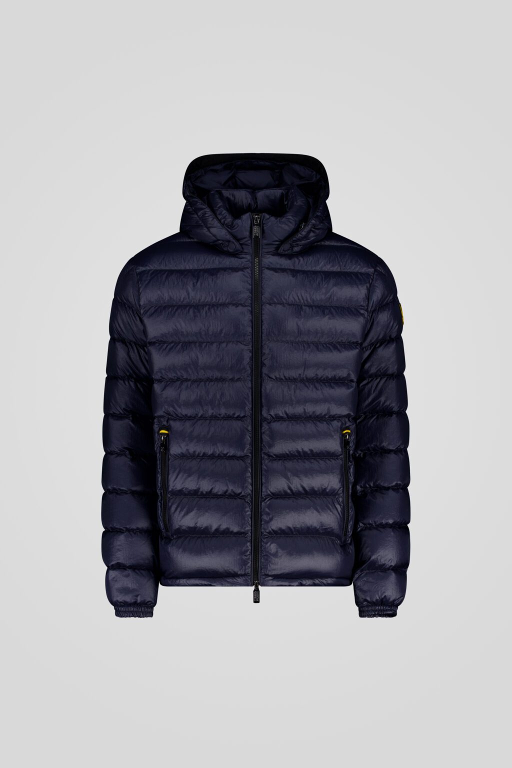 Piumino blu 200 grammi con imbottitura in vera piuma 800 fill power 90/10, ideale per attività sia urban che outdoor.