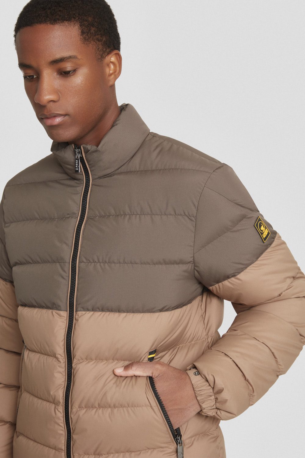Piumino marrone 200 grammi da uomo, imbottito in vera piuma 800 fill power 90/10, pensato per offrire comfort termico e stile.