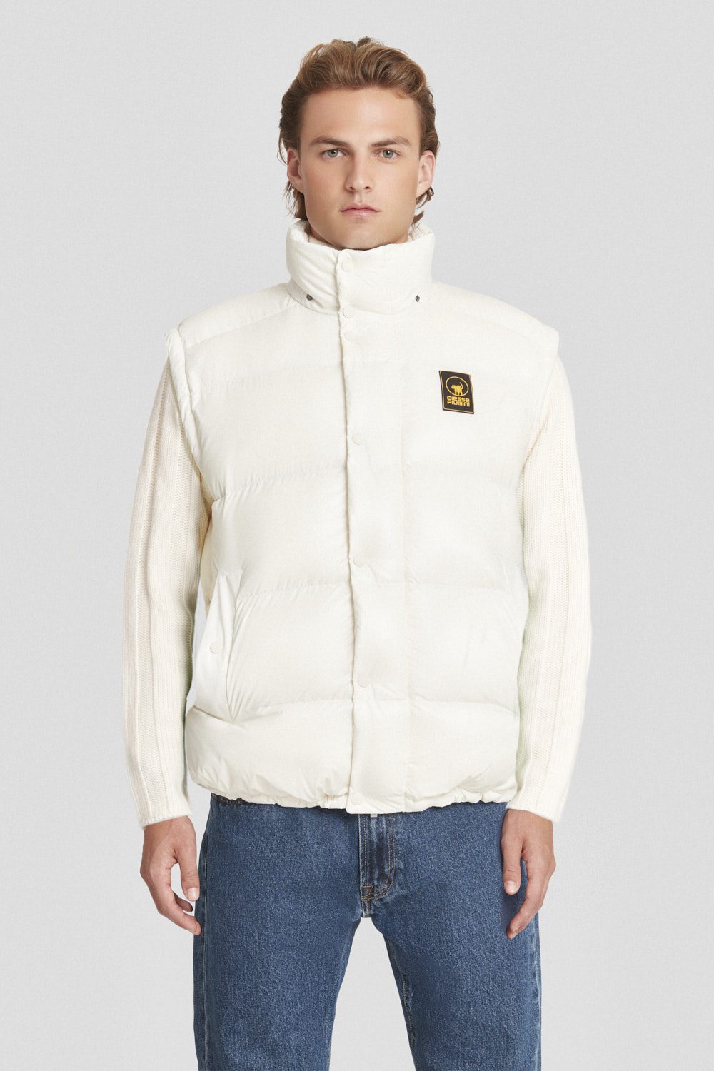 La sua struttura modulare rende il capo altamente funzionale: maniche e cappuccio sono staccabili, trasformando il piumino in un pratico gilet, perfetto per adattarsi a ogni occasione e condizione climatica.