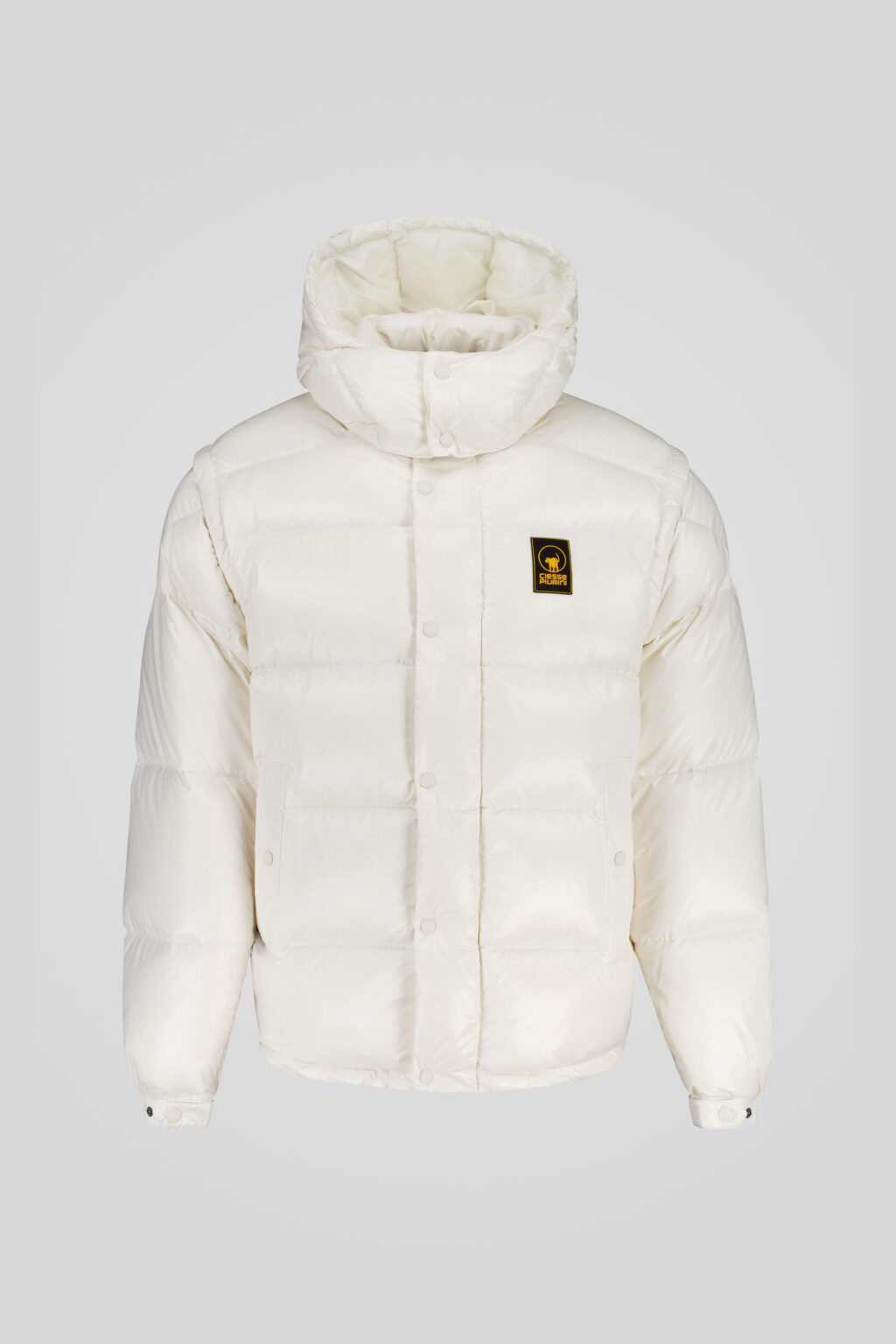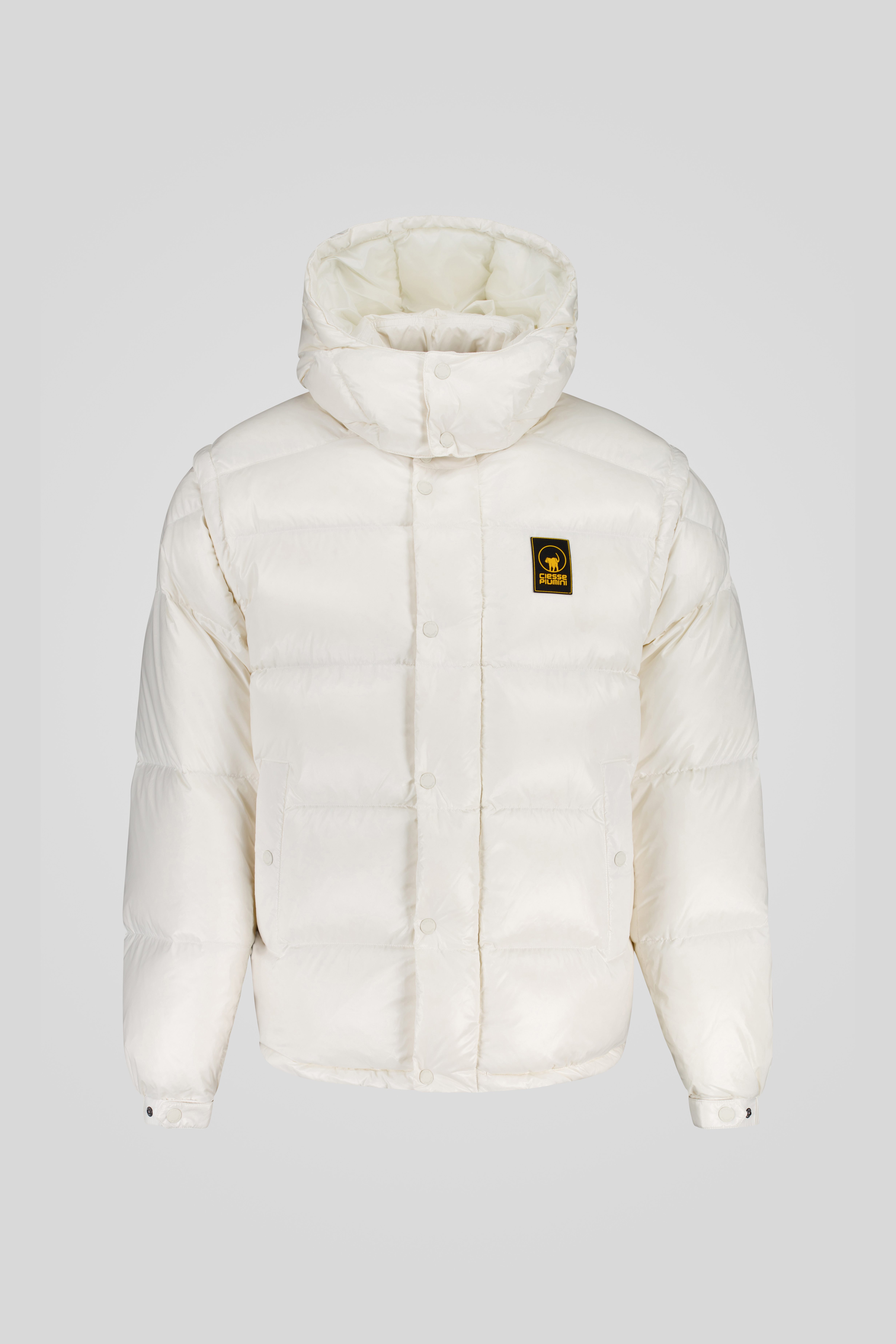 Piumino trapuntato bianco con cappuccio e maniche staccabili
