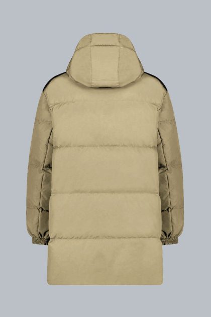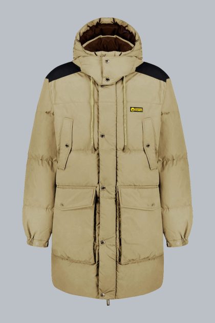 Il modello unisex Alaska in colore verde militare è una rivisitazione in chiave genderless di un capo iconico di Ciesse Piumini anni ’80.