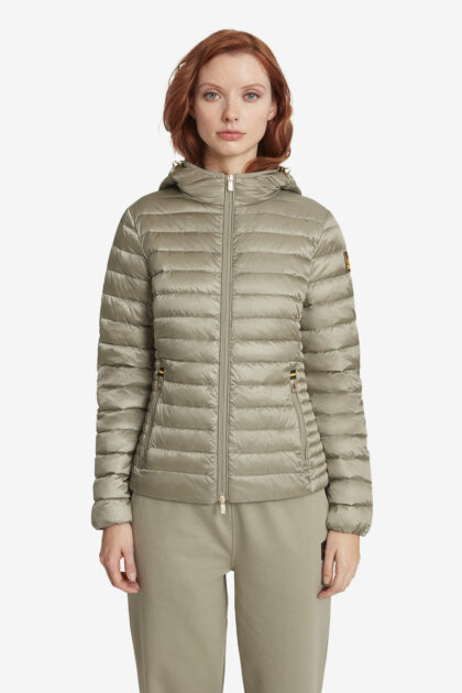 CARRIE 2.0 – Piumino 800 fill power da donna in vera piuma verde té con cappuccio