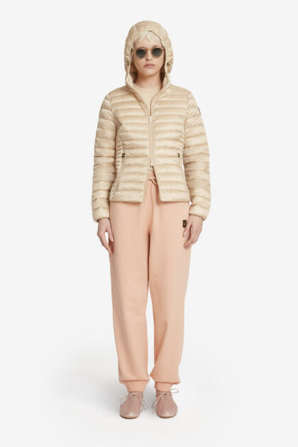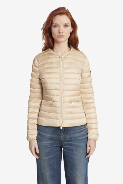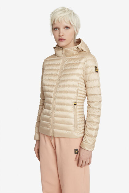 CARRIE 2.0 – Piumino 800 fill power da donna in vera piuma beige con cappuccio