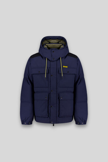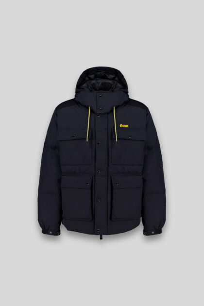 ALASKA – PIUMINO UNISEX NERO 4 TASCHE CON CAPPUCCIO STACCABILE 100% RICICLATO