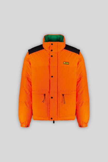 ALASKA – PIUMINO UNISEX ARANCIONE 4 TASCHE CON CAPPUCCIO STACCABILE 100% RICICLATO