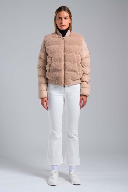 BONILLA – Piumino ibrido grigio in teddy con cappuccio