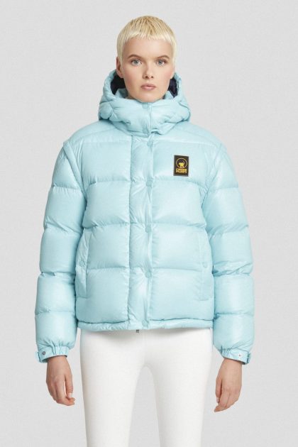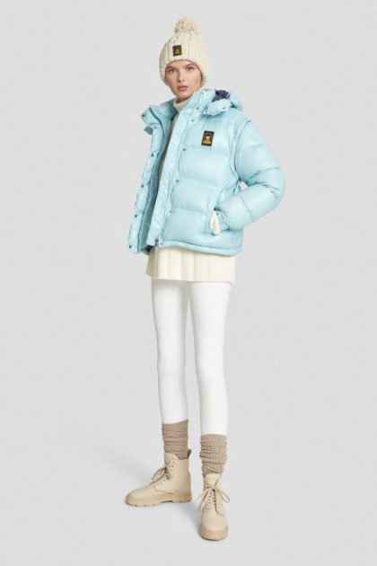 Piumino azzurro con cappuccio