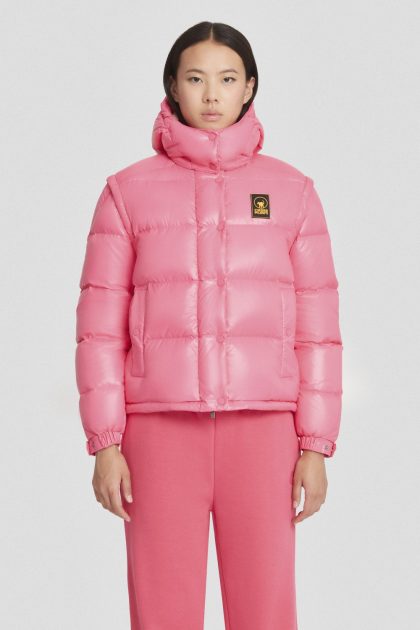 Piumino corto fucsia con cappuccio staccabile