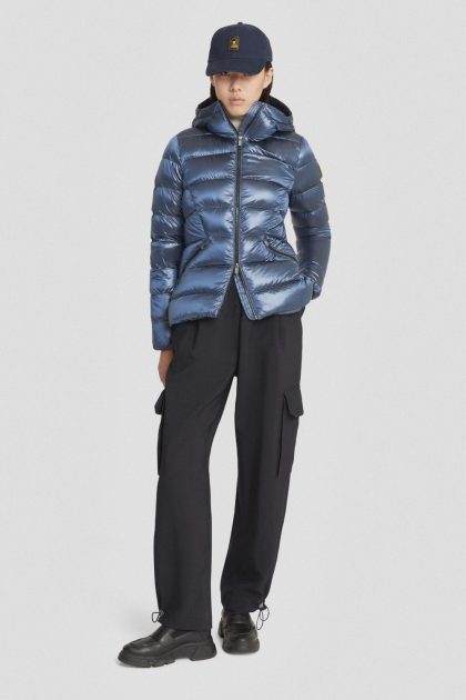 Piumino blu con cappuccio