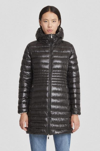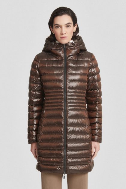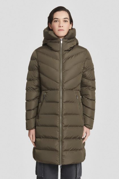 Piumino medio-lungo verde militare con cappuccio staccabile