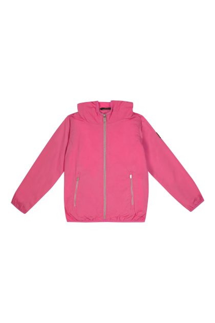 Giacca a vento in nylon lucido milky, impermeabile e traspirante, perfetta per la mezza stagione.