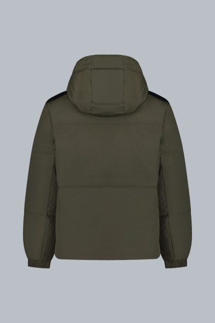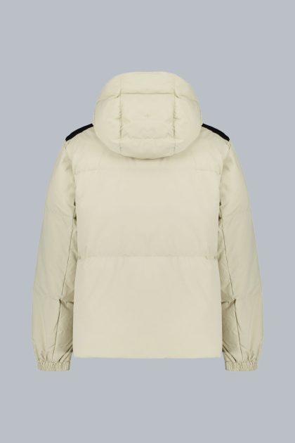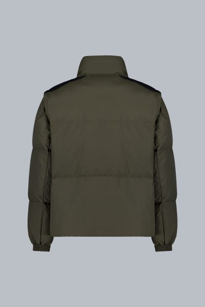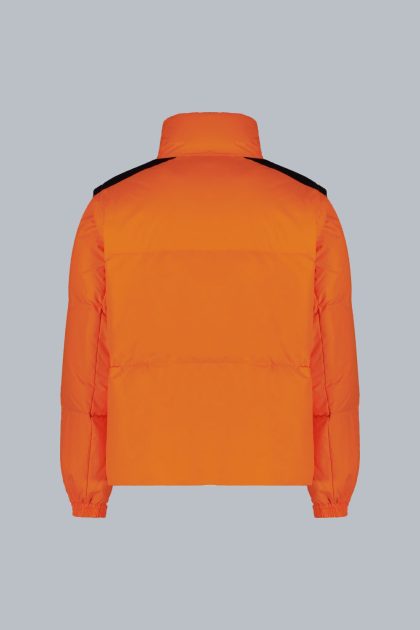 Il modello crop Nevada è realizzato in nylon riciclato in tonalità forti, riprese dagli archivi storici, ed imbottito in vera piuma rigenerata.