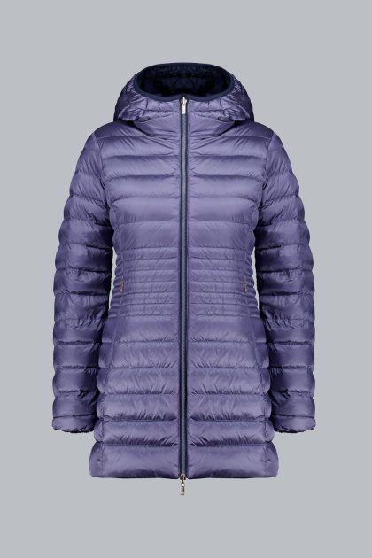 KALIE – Piumino lungo blu reversibile in vera piuma 800 fill power