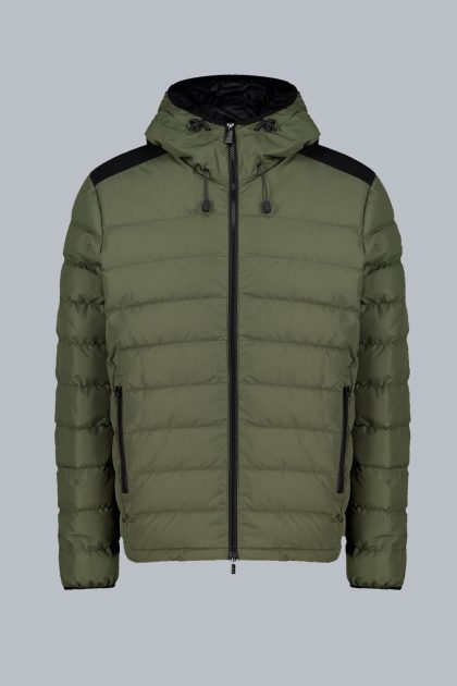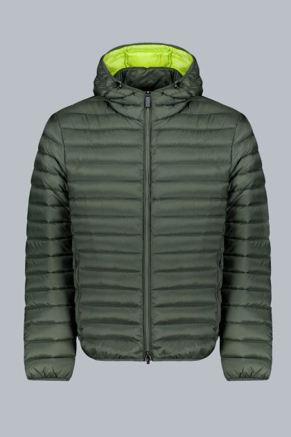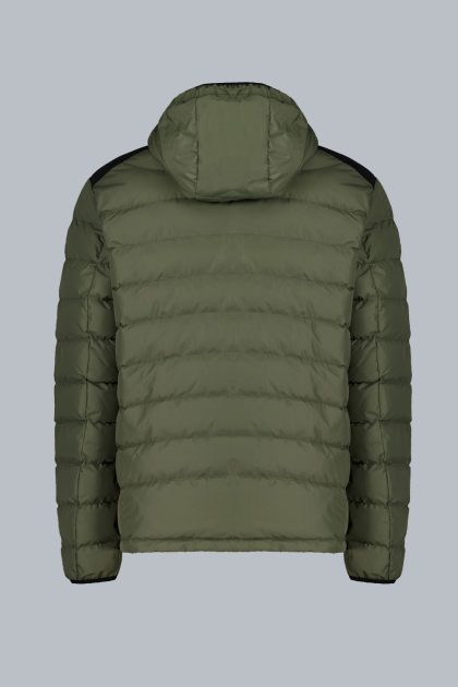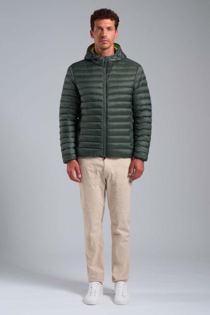 FRANKLIN 2.0 – Piumino 100 grammi verde con cappuccio in vera piuma 800 fill power