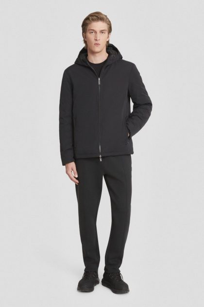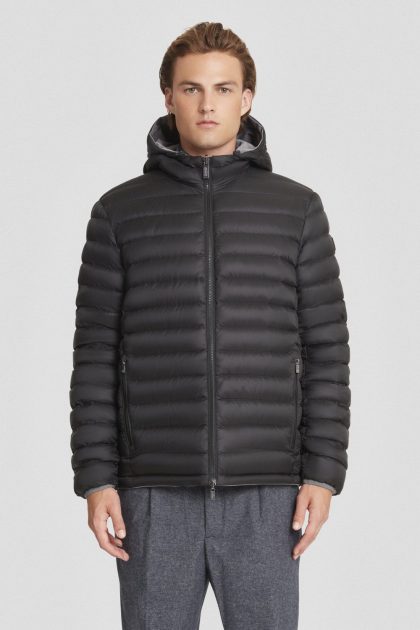 Piumino trapuntato nero con cappuccio e maniche staccabili
