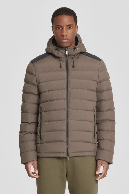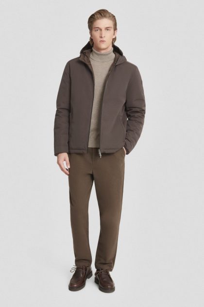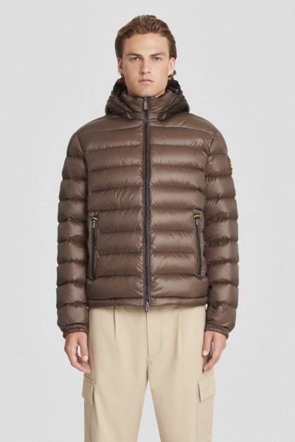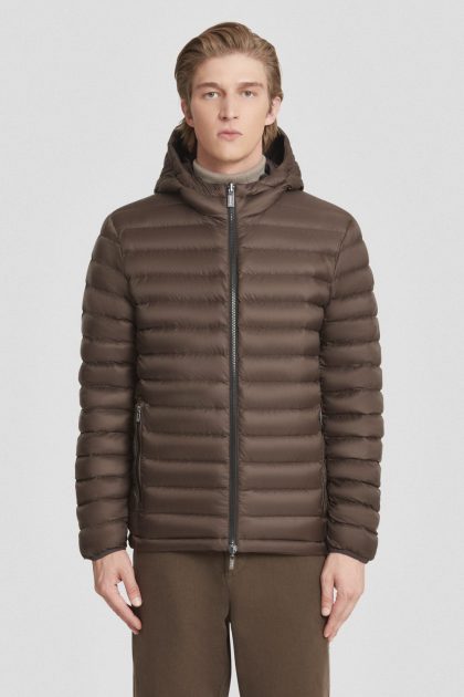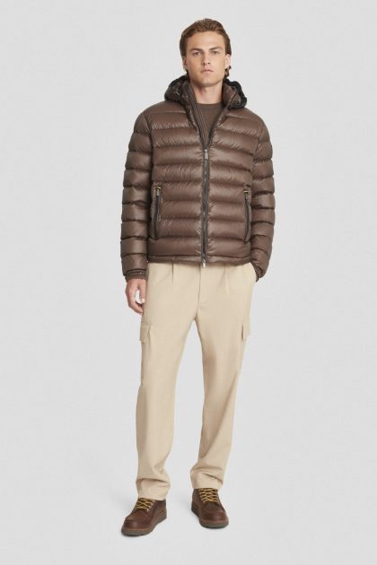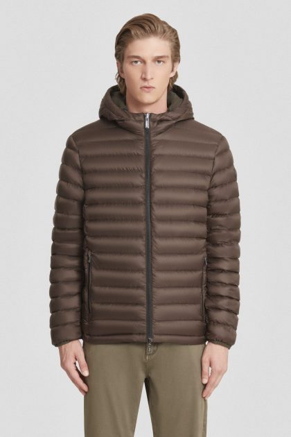Piumino corto marrone con cappuccio