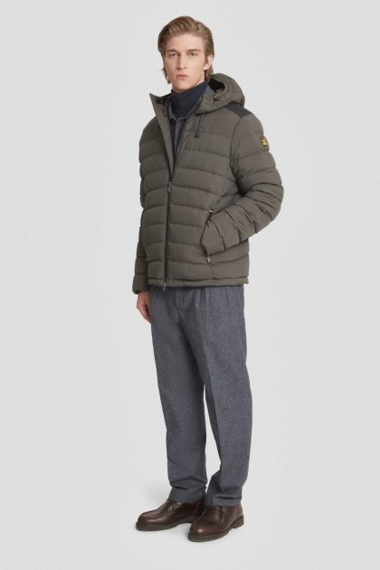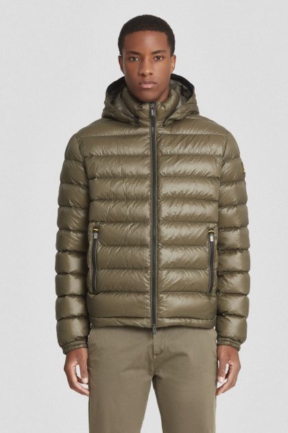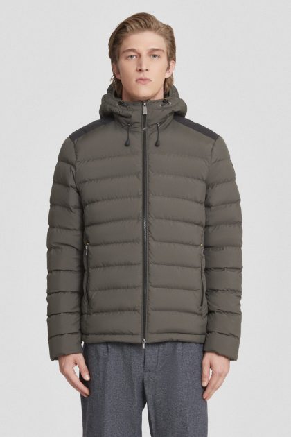 Piumino corto verde militare con cappuccio