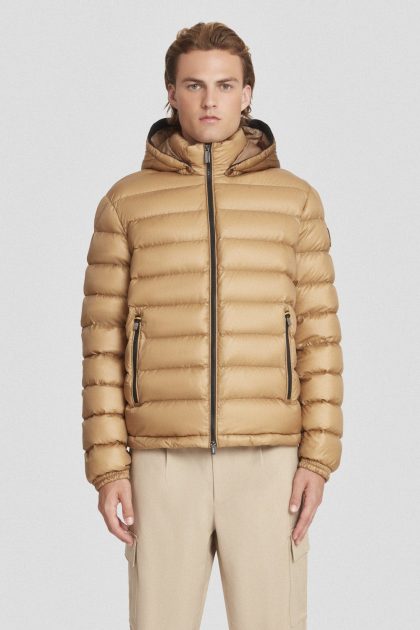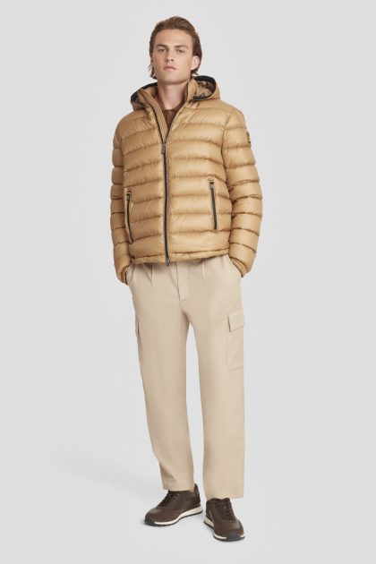 Piumino corto beige con cappuccio staccabile
